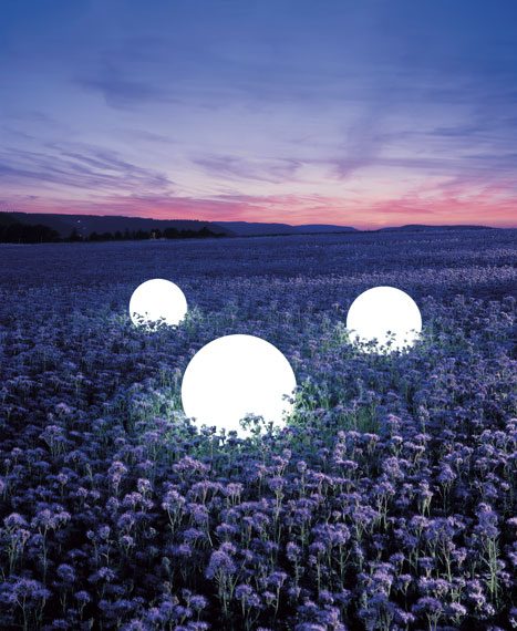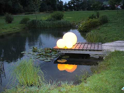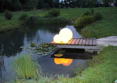 Leuchtkugeln in Teichumgebung